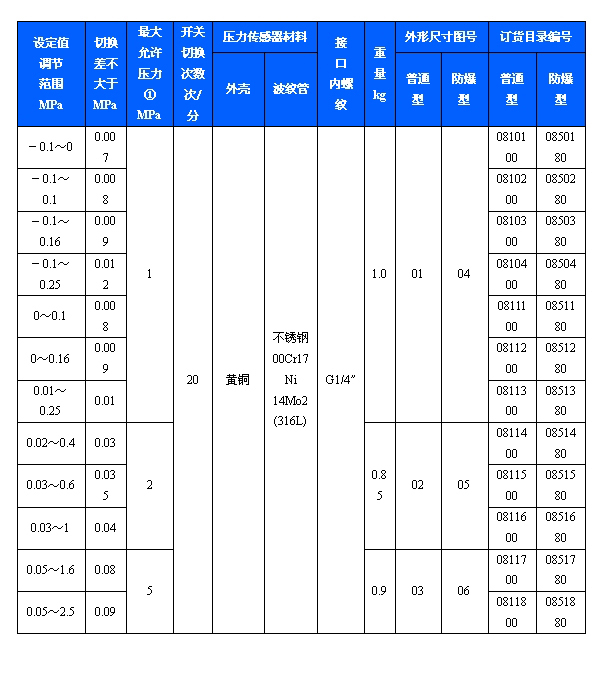502/7D壓力開關(guān)可用于真空。有特殊要求的,可另行設(shè)計調(diào)節(jié)范圍-0.1~6.3MPa。